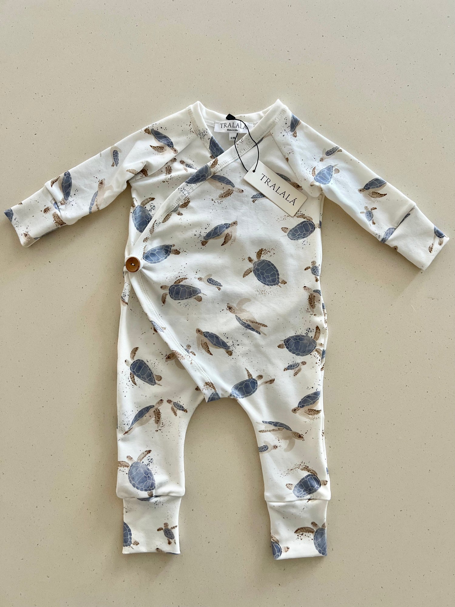 Button Romper- Ocean Turtle
