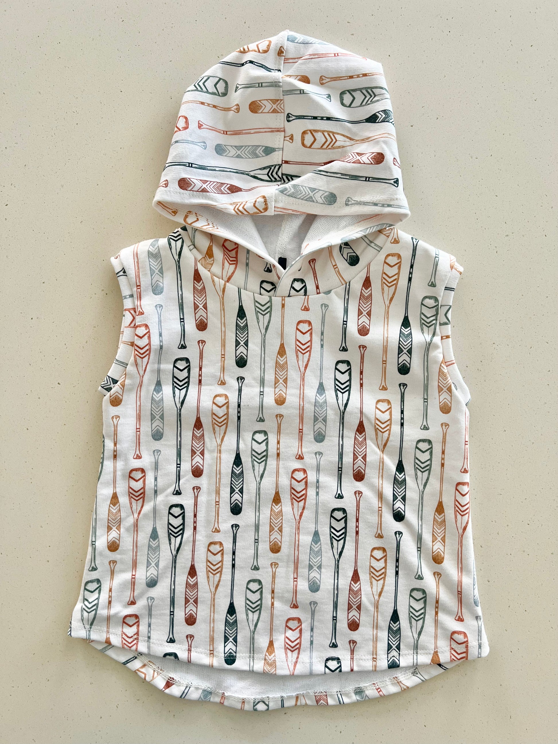 The Hoodie Tank is an easy pull-on top with an attached stylish hood. Plenty of room in the torso provides additional functionality and comfort. Shown here in our Rowing Crew print.