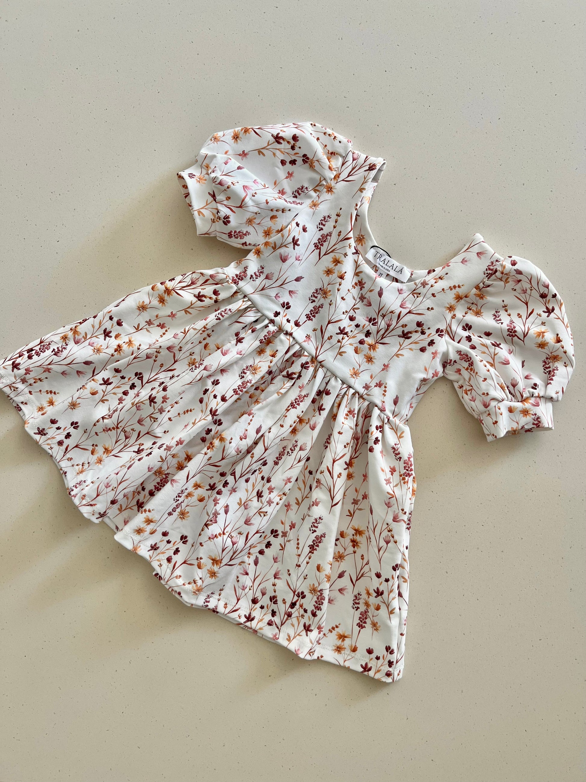 The Jo Dress is our newest midi dress. An easily pulled-on dress with a gathered cottagecore sleeve. Plenty of room in the skirt provides additional functionality and comfort. Shown here in our Autumn Meadow print.